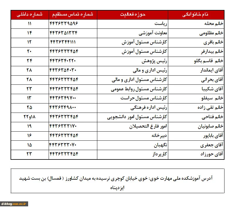 شماره های تماس با مرکز